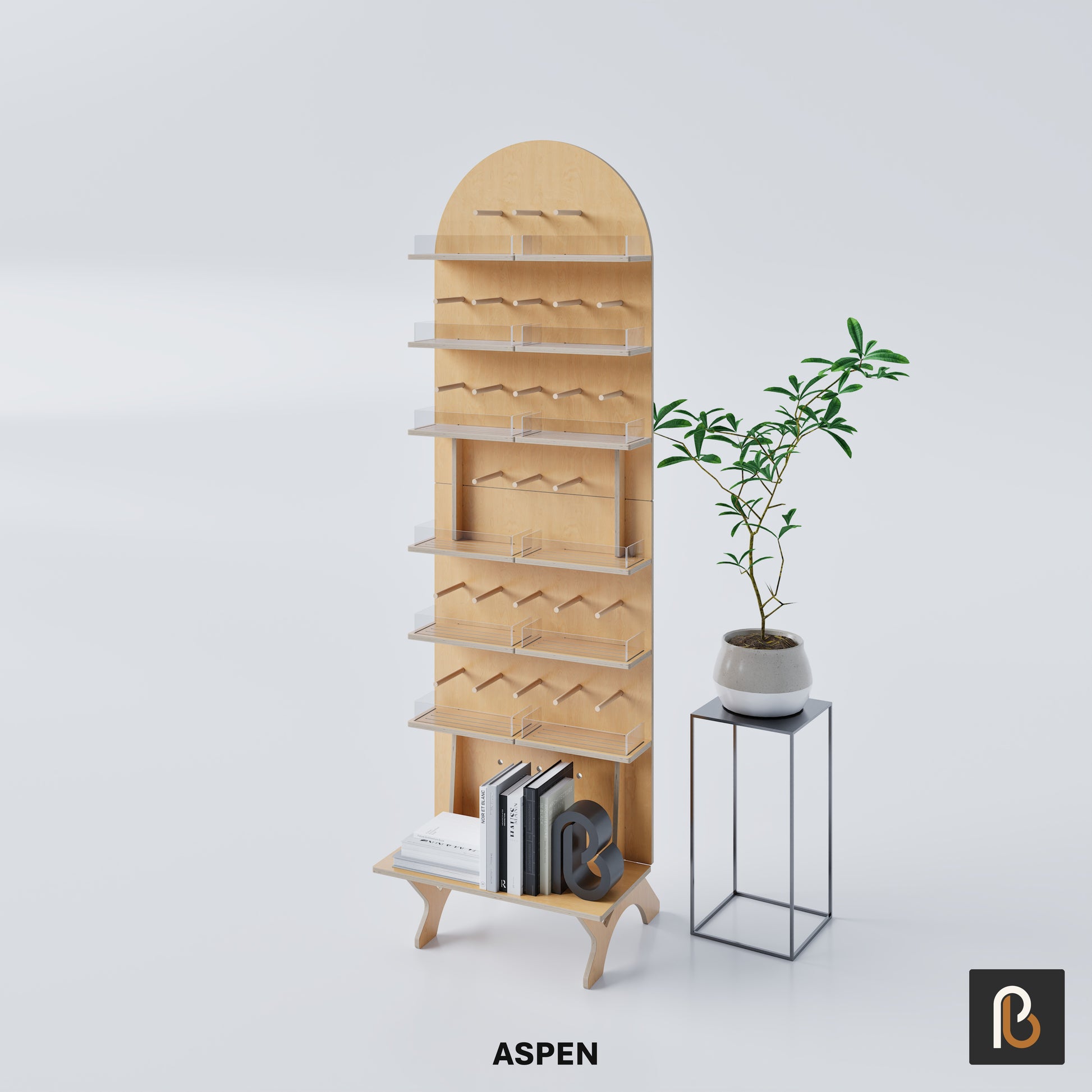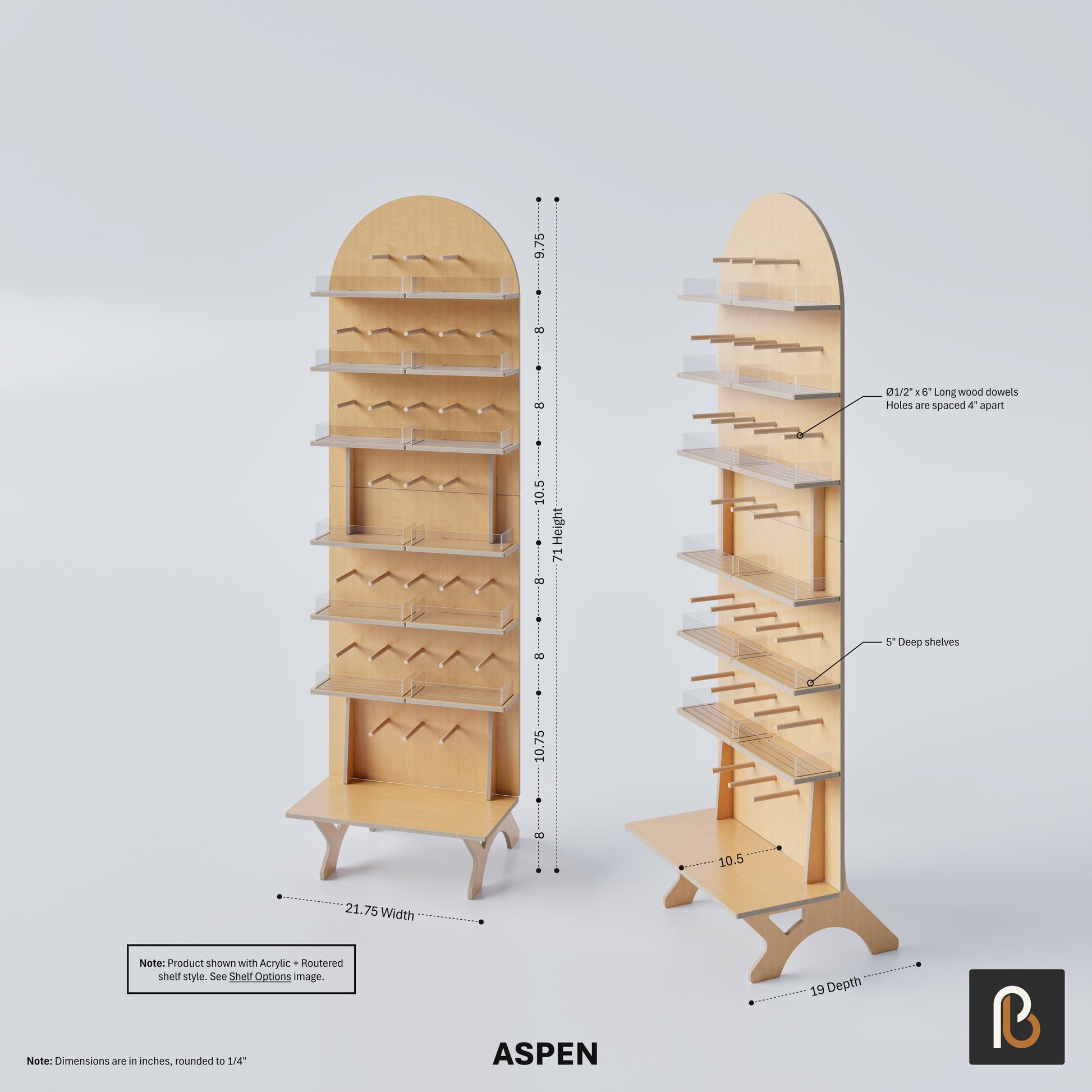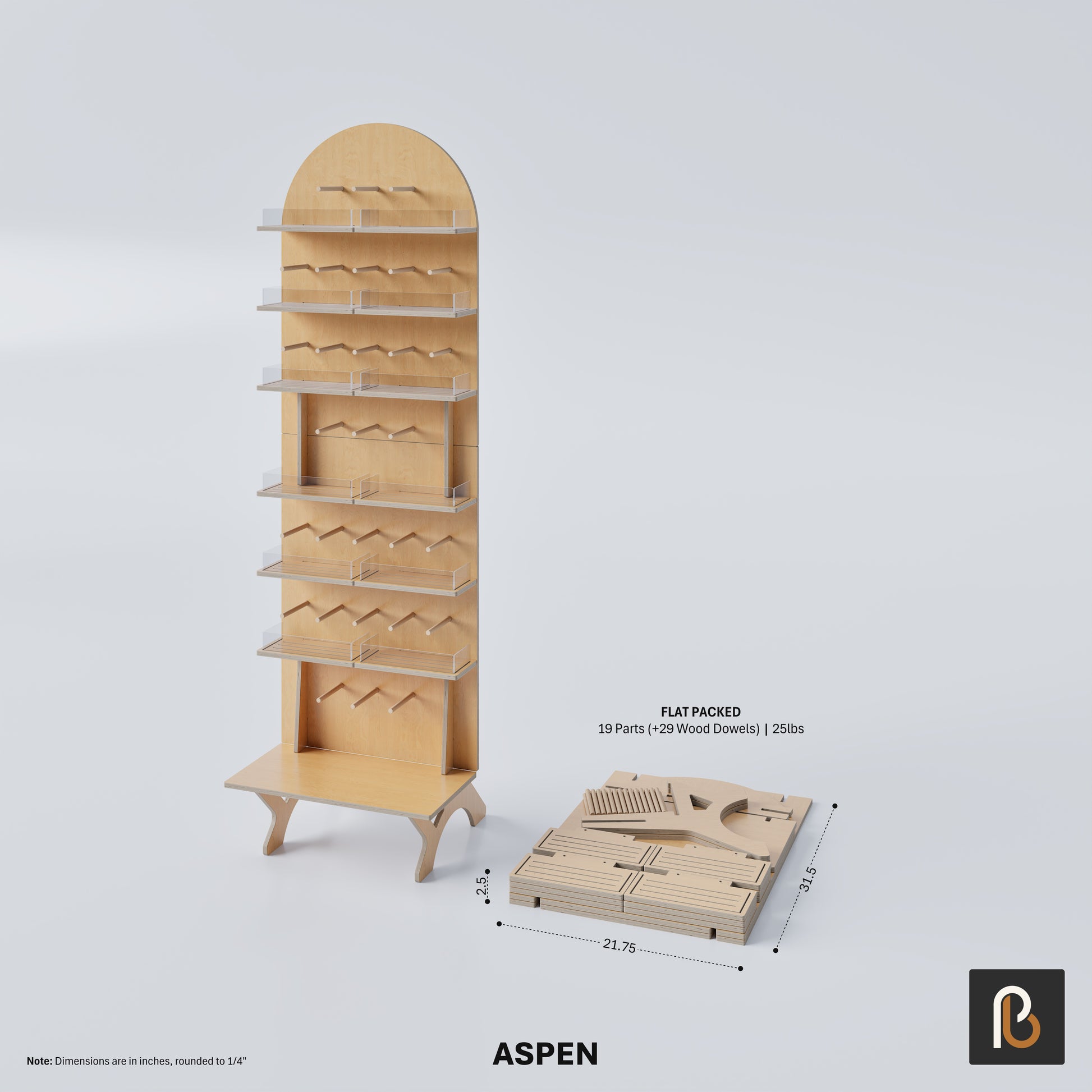 Elevate your products with our Aspen Arched Pegboard! Interlocking structure ensures stability, all while being able to be setup in minutes. The wood comes with a smooth surface coating, providing a durable, wipeable surface.