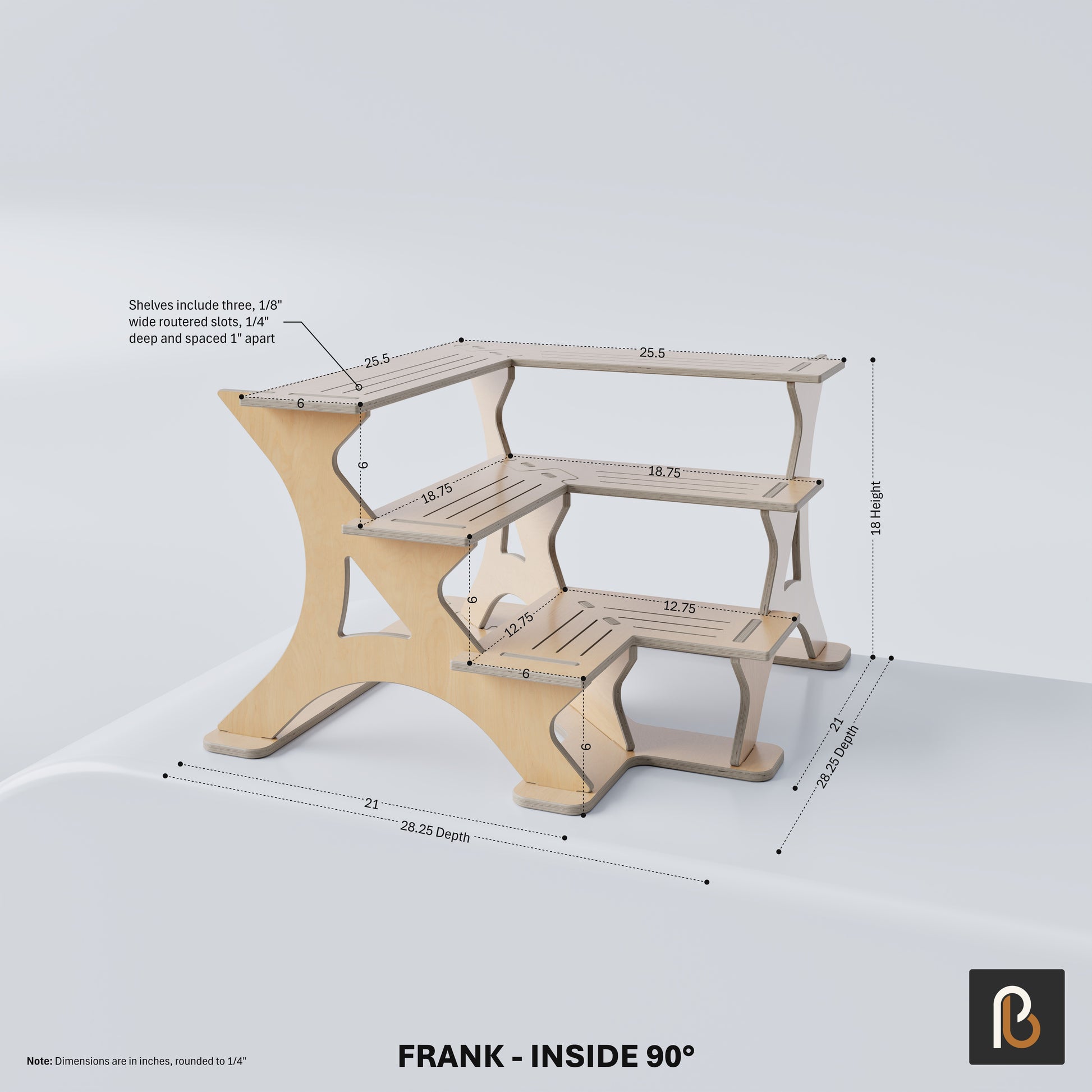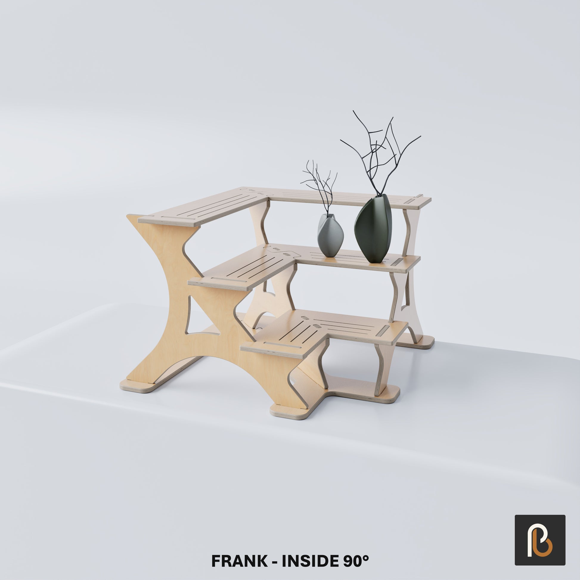 The Frank – Inside 90° expands on our Frank display by creating an L-shaped, corner-fitting design. Perfect for building U-shaped layouts on your tabletop, this piece allows for seamless integration with the original Frank.