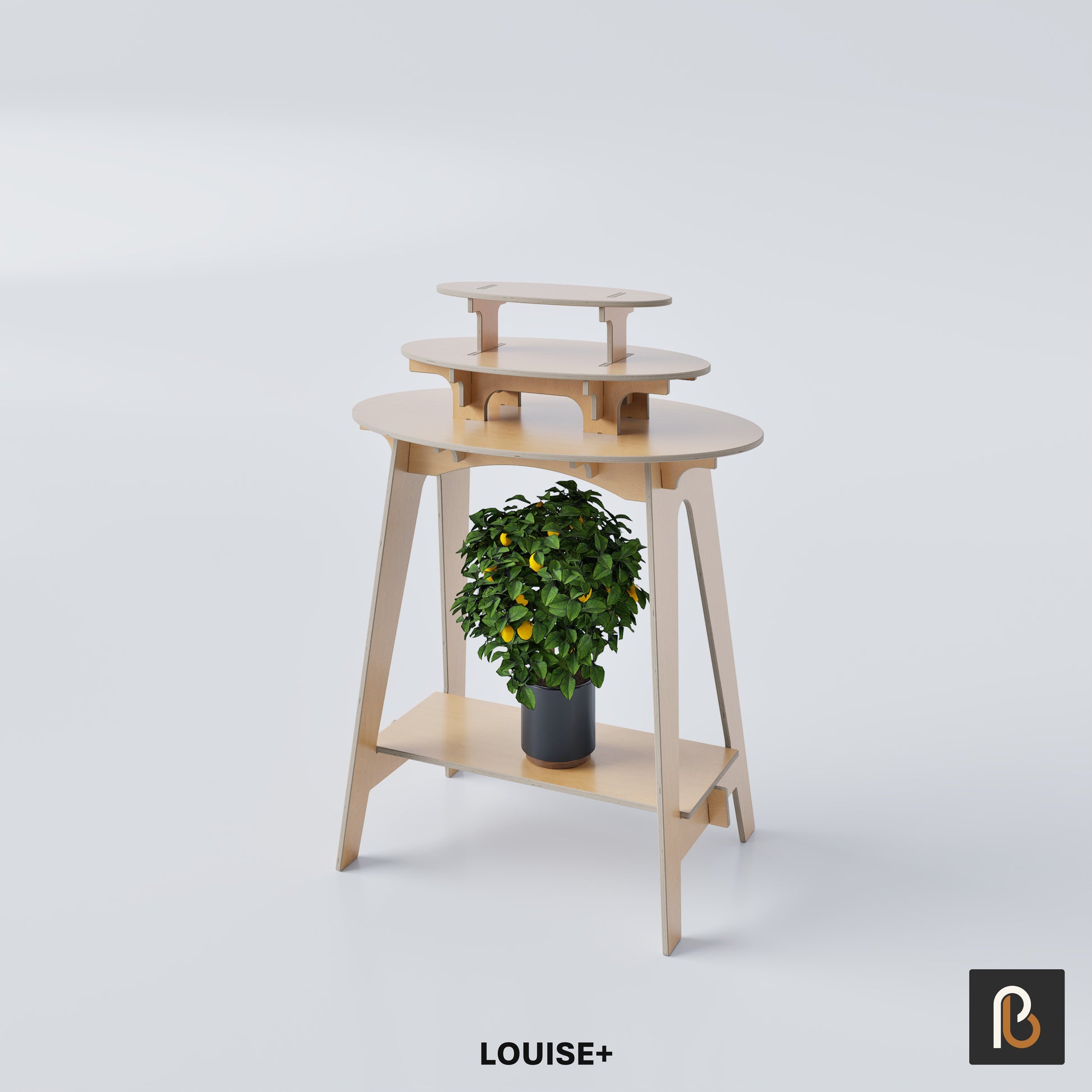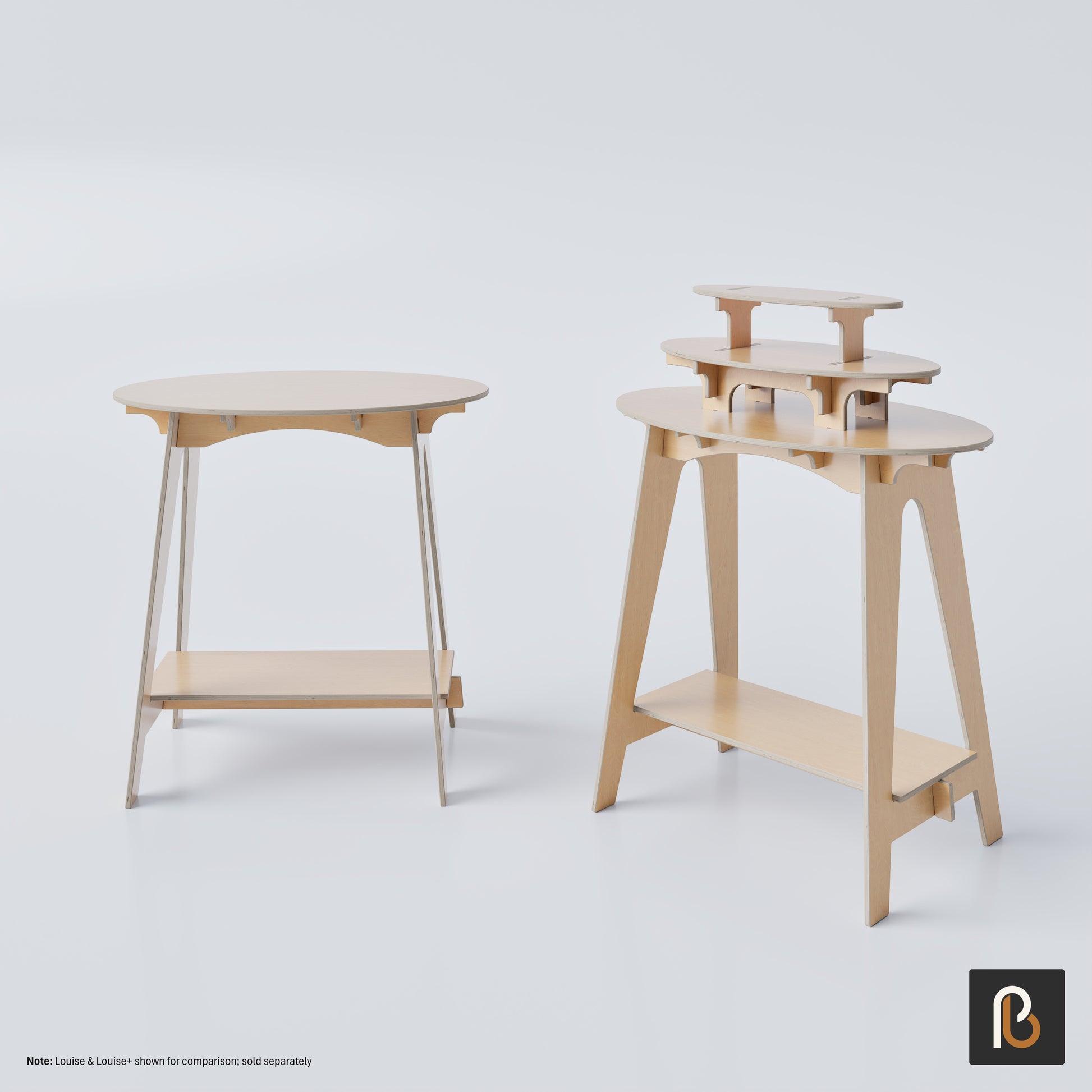 Centralize your product display with our Louise+ Modular Table. A spin-off from our classic Louise, the Louise+ offers integrated tiered shelving, adding height and depth to your product display. Made from cabinet-grade Birch plywood, all of the pieces interlock together, assembling the display in seconds. The wood comes with a smooth surface coating, providing a durable, wipeable surface.